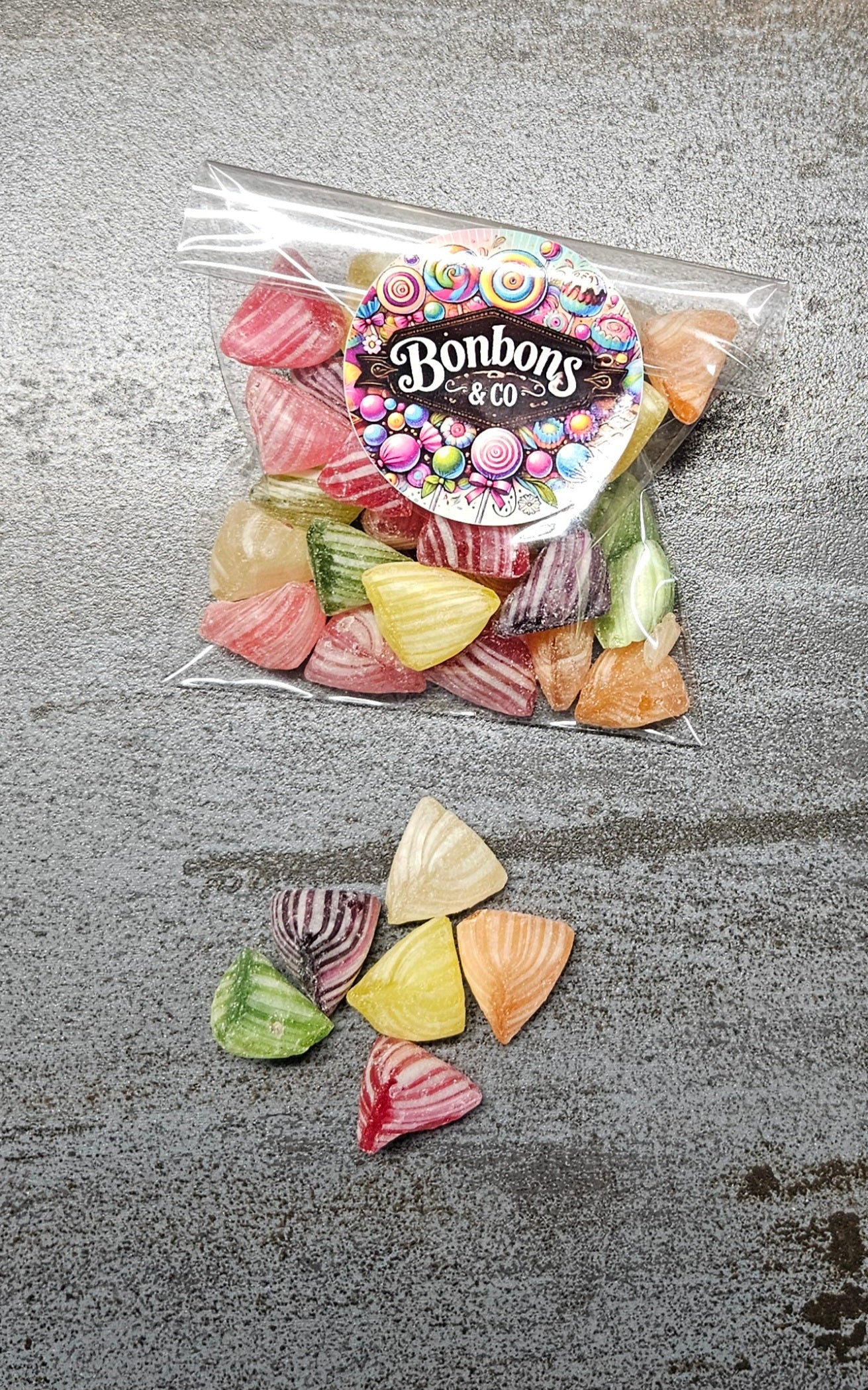 Ingrédients : Sucre - sirop de glucose de blé - acidifiant, acide citrique arômes naturels, colorants : curcumine carmin, complexe cuivre chlorophylles et chlorophyllines, extrait de paprika, cire de carnauba
