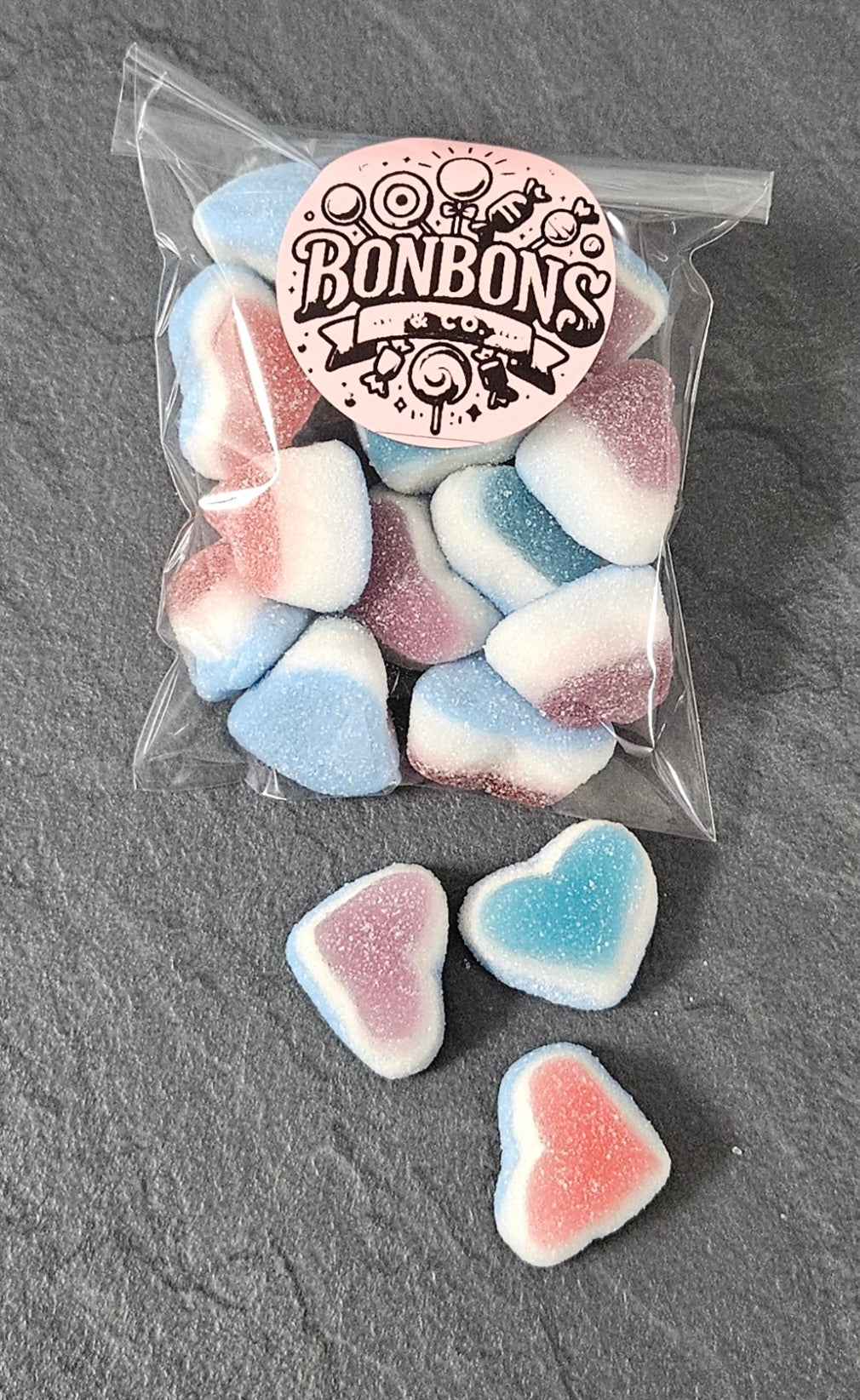 Ingrédients: sirop de glucose; sucre; gélatine; dextrose; acidifiants: acide citrique, acide malique; agent d'enrobage: cire de carnauba; correcteurs d'acidité: citrate tricalcique, malate acide de sodium; arôme; concentrés de fruits et de plantes: citron, carthame, patate douce, cerise, pomme, radis, spiruline; sirop de sucre inverti; colorants: carmins, bleu patenté V, carotènes végétaux, lutéine, anthocyanes.