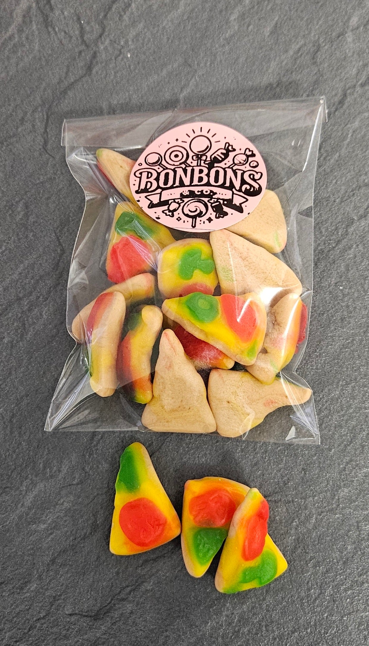 - Ingrédients : (sous réserve de modification par le fabricant) Sirop de glucose, eau, sucre, gélatine de bœuf, amidon modifié de pomme de terre, acidifiants : E330, E170, agents d'enrobage : huile végétale (palme), E901, E903, arôme, colorants : E150c, E102, E129, E133. Sans gluten.