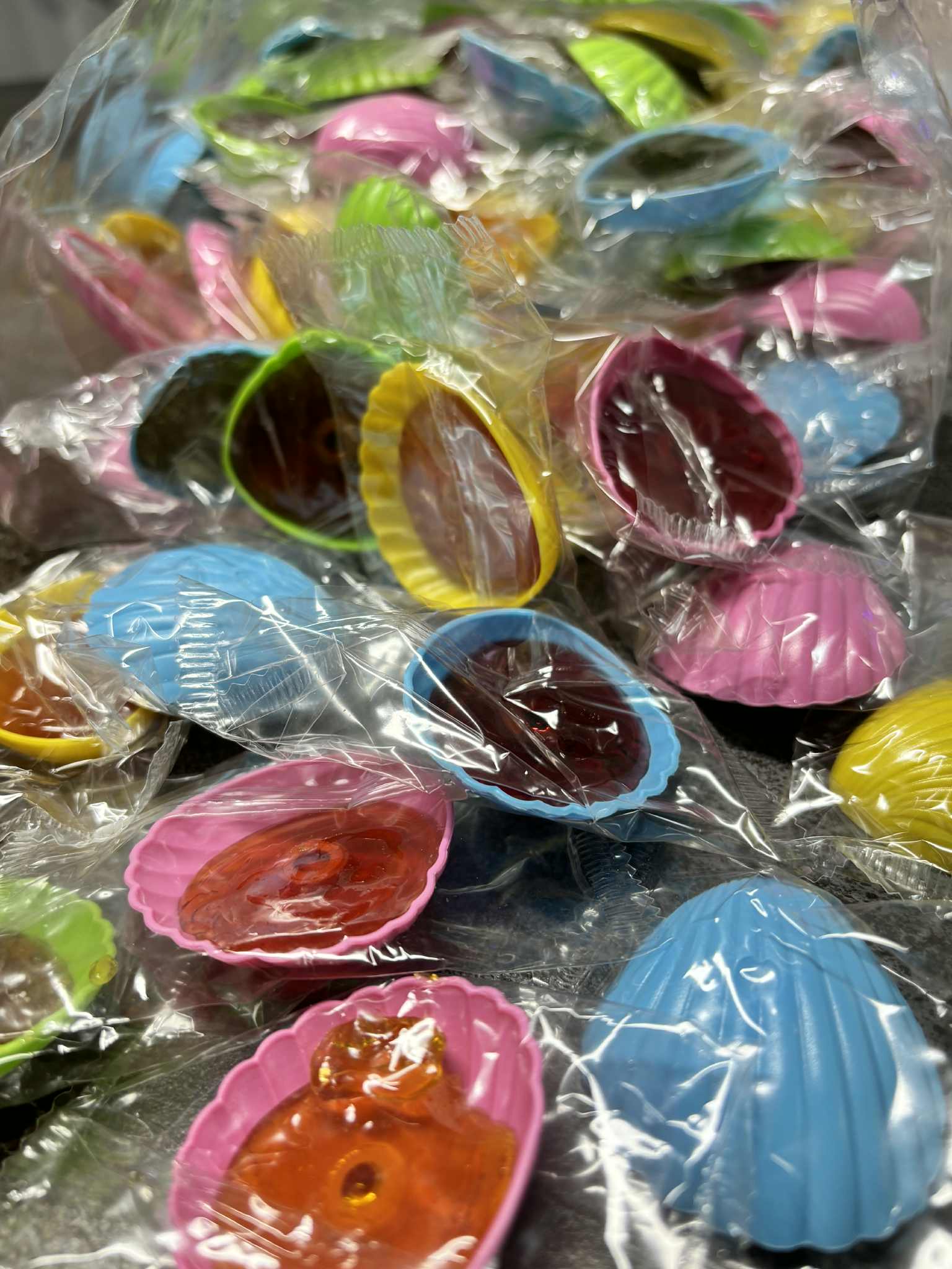 - Ingrédients : Sucre, glucose, arômes, colorants : E100, E120, E141.
