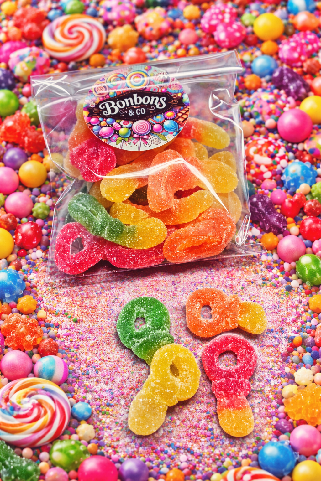 Ingrédient: Sirop de glucose, sucre, eau, gélatine de bœuf halal, amidon modifié de pomme de terre, acidifiants (E270, E296, E330), arôme artificiel, agents d'enrobage (monostéarate de glycérol (tournesol, E471)), huile végétale (coco, karité), colorants (E100, E129, E133, E160a, E163). Le colorant E129 peut avoir des effets négatifs sur l'activité et l'attention chez les enfants.