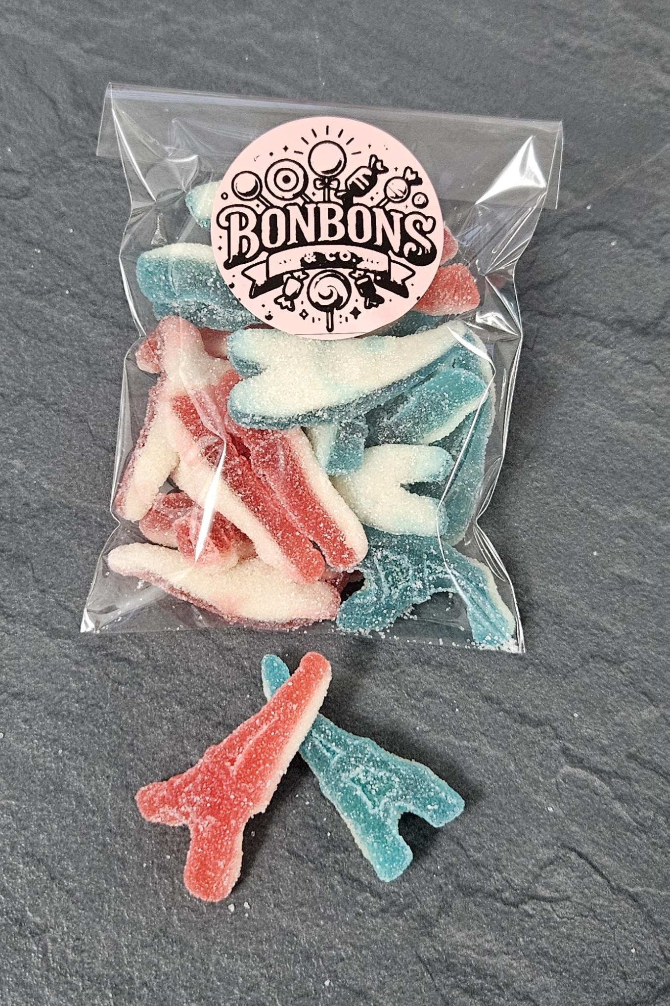 - Ingrédients : (sous réserve de modification par le fabricant) Sirop de glucose, sucre, eau, gélatine de bœuf, amidon modifié de pomme de terre, acidifiants : E330, E270, E296, agent d'enrobage : huile végétale (palme), arômes, colorants : E163, E160a, E129, E133.